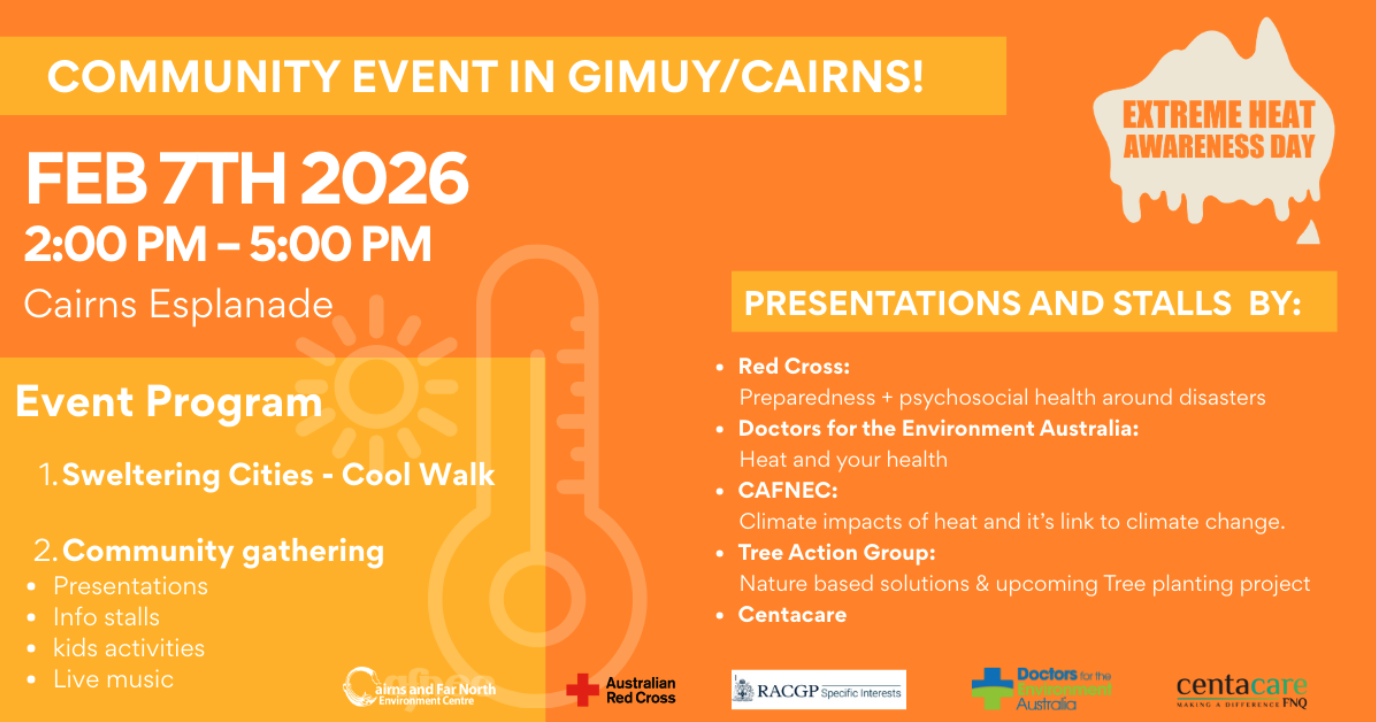 Join us on Saturday the 7th of December at the Cairns Esplanade for a fun event where we will explore Heat hazards in our region and the best way to stay safe and build resilience for our communities!
